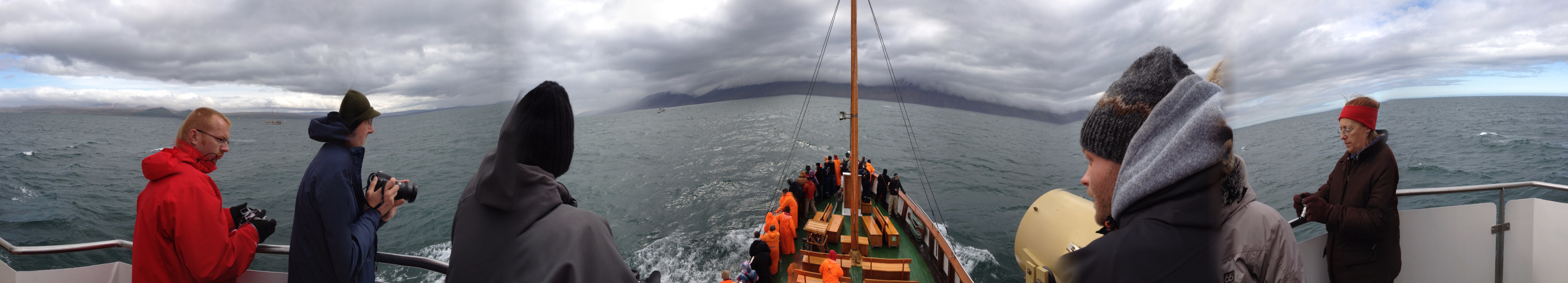 Today in the artic sea beyond Iceland’s port city of Husavik, we were looking out over the many sides of a ship for whales. They could surface from ANYWHERE. A quite expansive ANYWHERE.