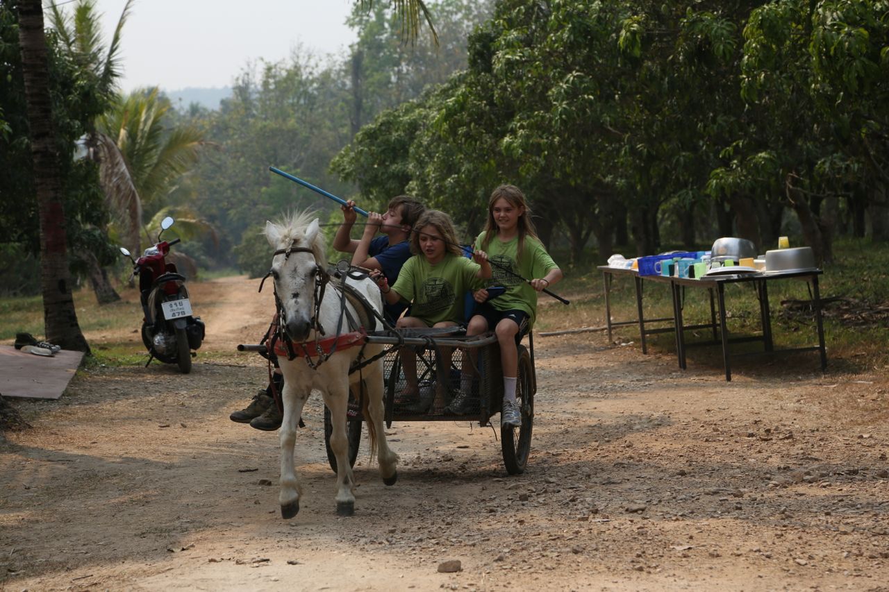 In some ways, we went hunting for tigers with the EB family. In the process, E survived the bucking pony. W thought the cooked dog was “chewy.”
