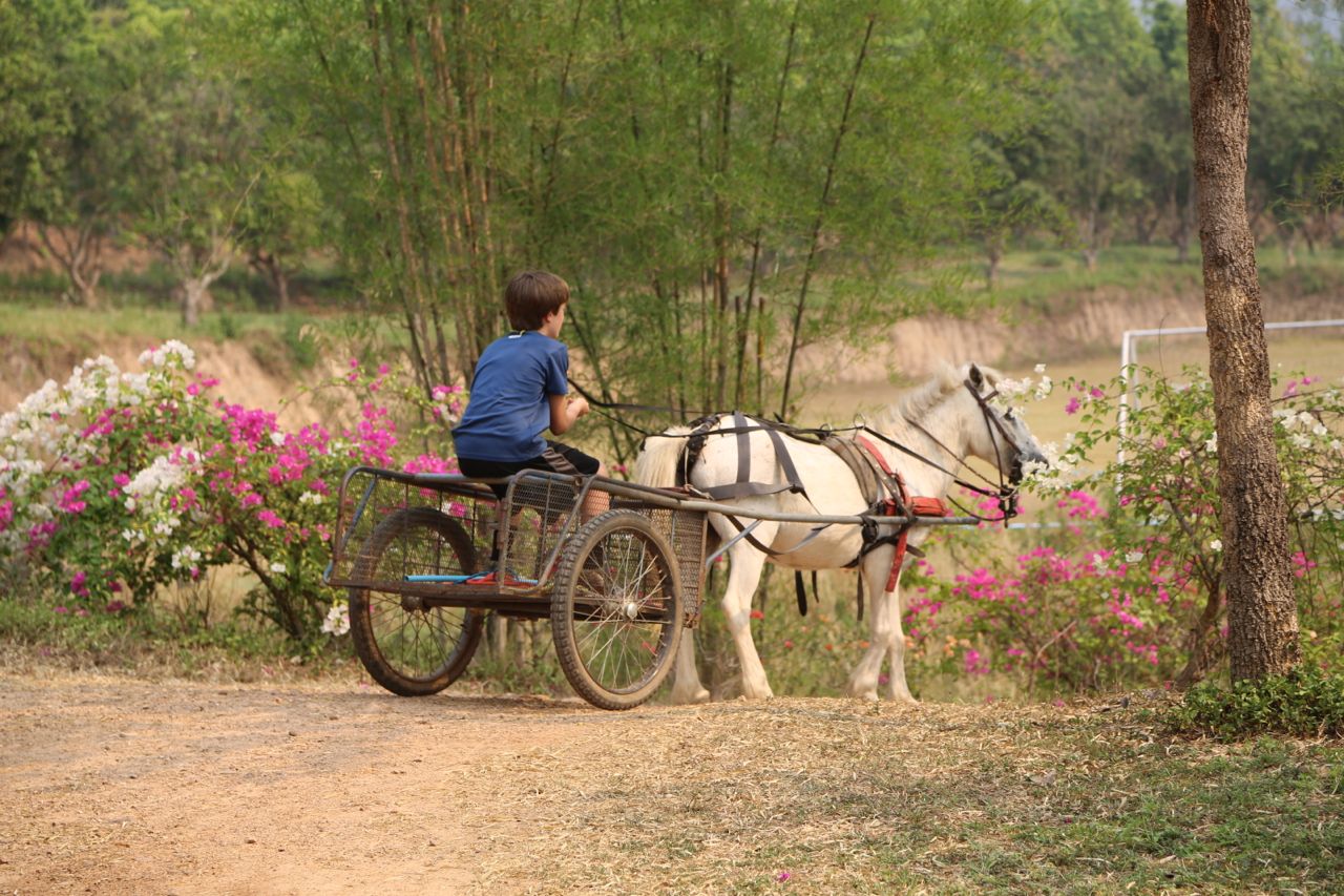 Our time with the EB family began with E hanging off the side of a bucking pony. He struggled to free his foot that was stuck in a loose and sagging saddle before being thrown under the distressed animal.