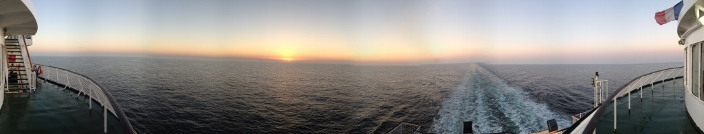 … we crossed the English Channel on a car ferry at sunrise …